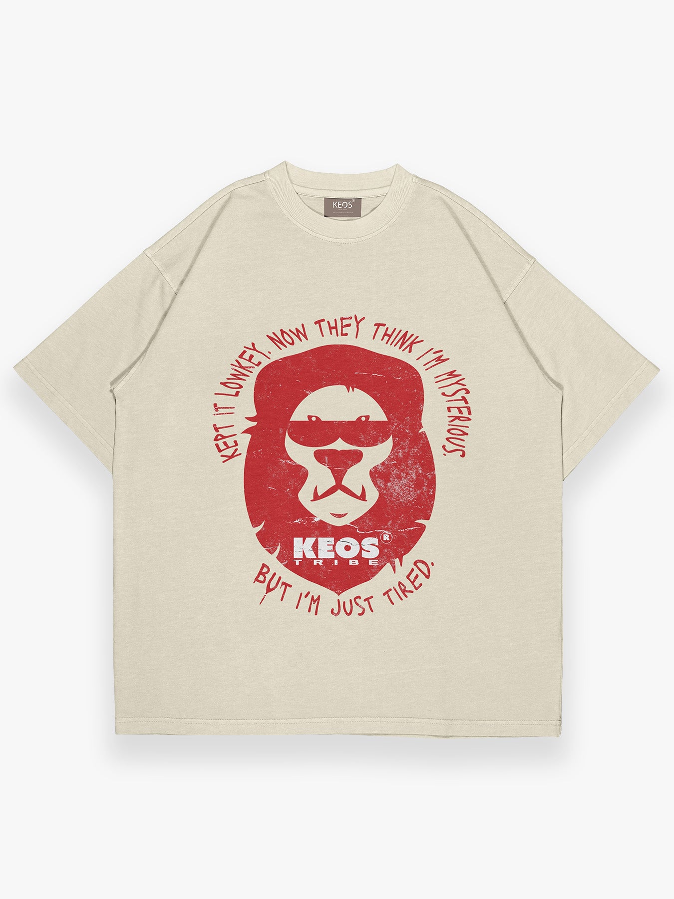 Street-easy, lounge-level comfy. This oversized tee is cut in premium terry knit for a soft, body-skimming drape and finished with a ribbed crew neck. The front graphic features the KEOS lion icon with the line: “Kept it low key. Now they think I’m mysterious. But I’m just tired.” Modern proportions, off-duty attitude—built for repeat wear.