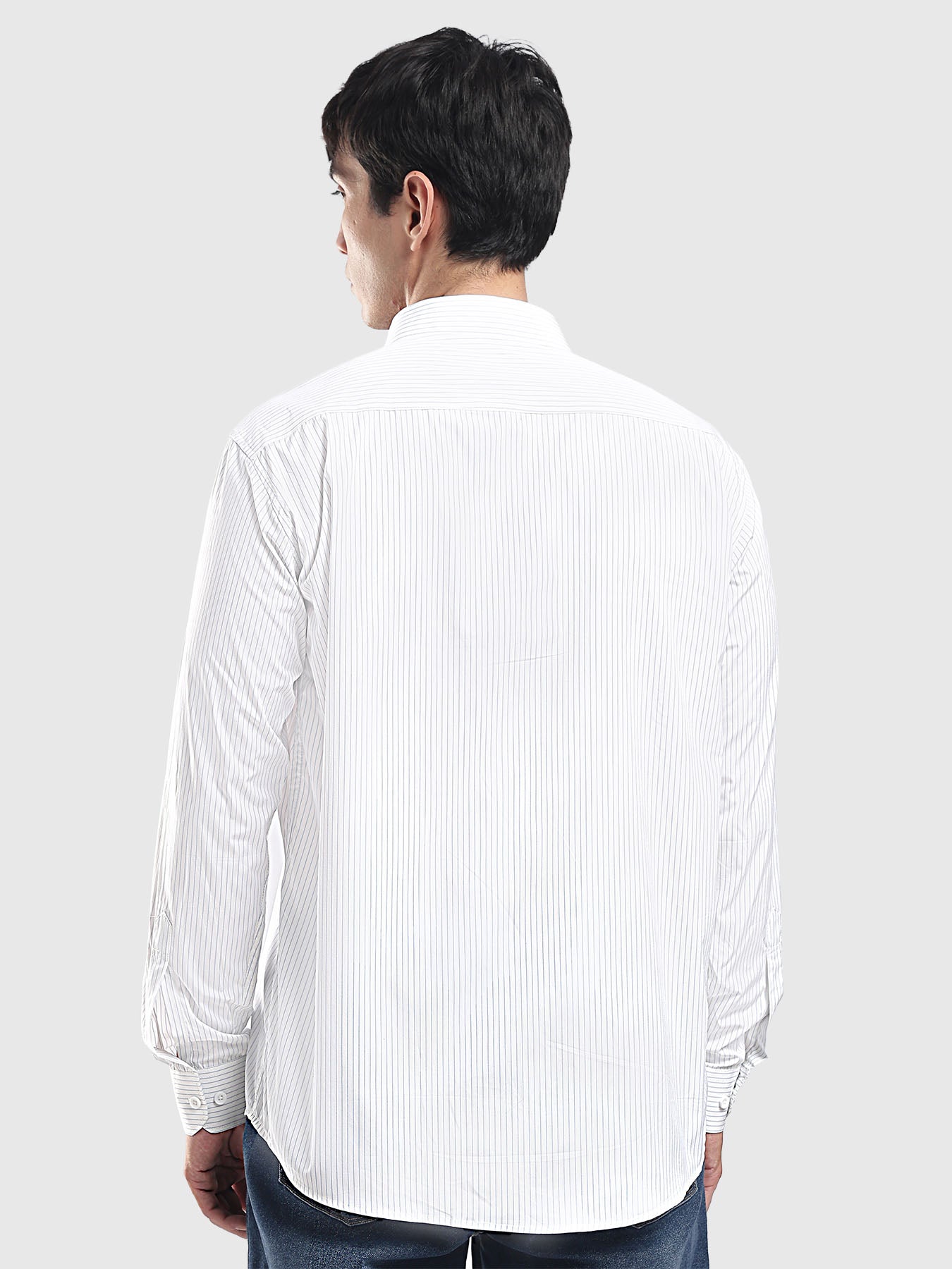 Pair it with navy trousers for a sharp office-ready look or dress it down with chinos for a casual evening. The White & Blue Pinstripe shirt is your go-to for sophisticated yet versatile styling.